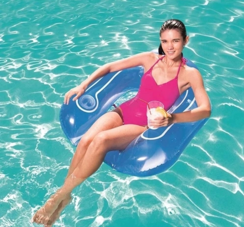 Ela vem com porta copo para melhor acomodação de líquidos, sendo perfeitamente indicada para o uso em piscinas e mares.