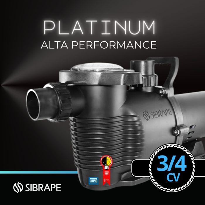 Bomba para piscina ALTA PERFORMANCE 3/4cv Sibrape Platinum WEG EIXO EM CARBONO