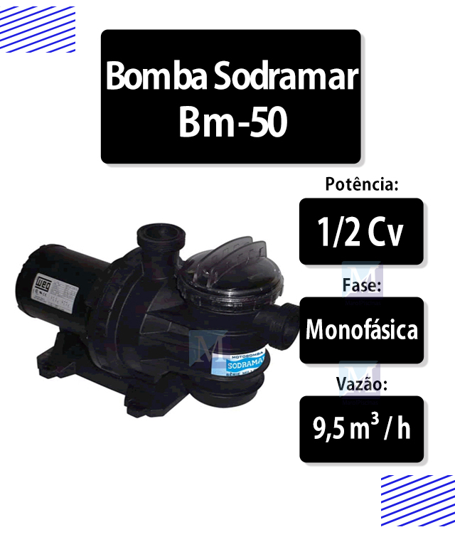 As motobombas residenciais Sodramar, são constituídas de material resistente e a prova de corrosão, possuem alta vazão, atuando com eficiência e segurança; além de serem auto-escorvantes, permitindo que trabalhem acima do nível da água. Os modelos variam de 1/4 à 3,0cv e sem dúvidas, este produto atenderá sua necessidade de forma satisfatória.