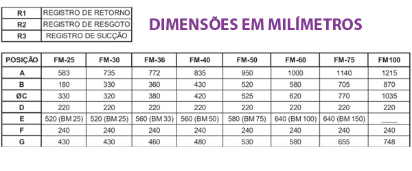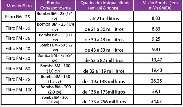 O modelo BM-50 tem vazão nominal com um rendimento de até 9,91 m³ / hora.