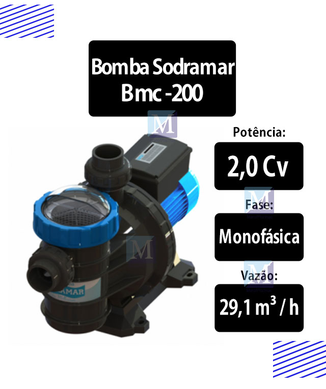 A Sodramar desenvolveu a Bomba para Piscina 2cv BMC-200 pensando em garantir muita praticidade em sua instalação. Com a Bomba para Piscina 2cv BMC-200, você não terá grandes problemas para instalá-la. O produto é recomendado para efetuar a filtragem da água de piscinas que tenham capacidade de até 226 mil litros de água.