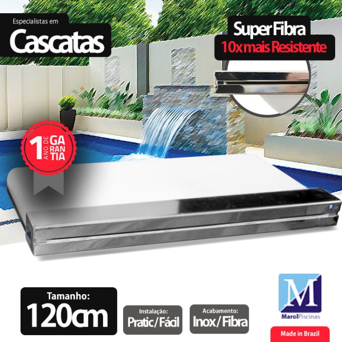ESTÁ INCLUSO Cascata de embutir 120 cm Tradicional Fibra e inox MAROL PISCINAS: