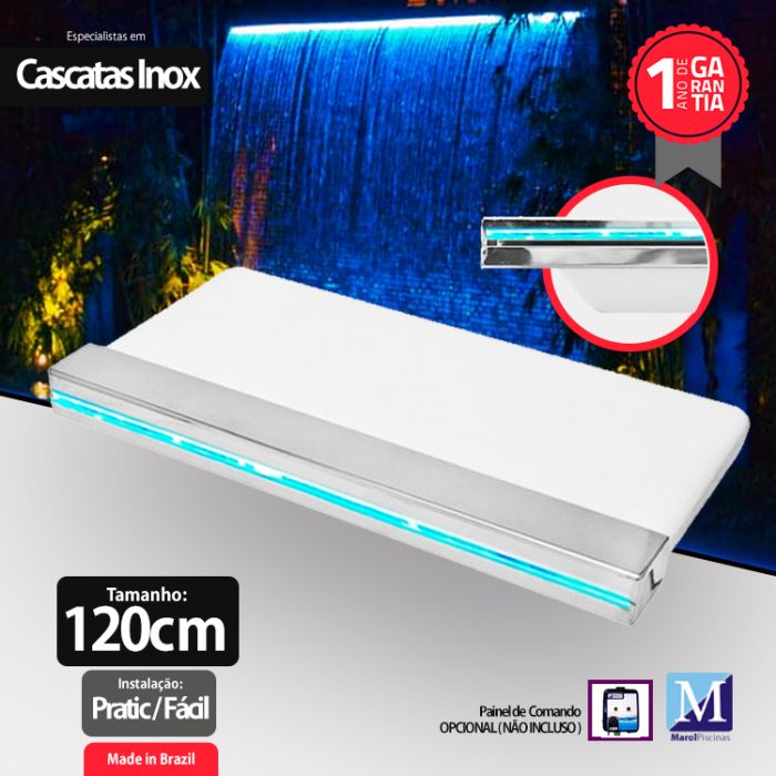 ESTÁ INCLUSO Cascata de embutir c/ Led 120 cm Tradicional Fibra e inox MAROL PISCINAS: