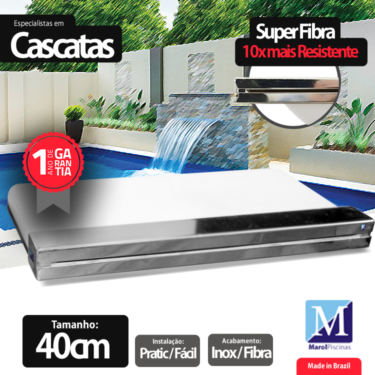 ESTÁ INCLUSO Cascata de embutir c/ Led 40 cm Tradicional Fibra e inox MAROL PISCINAS: