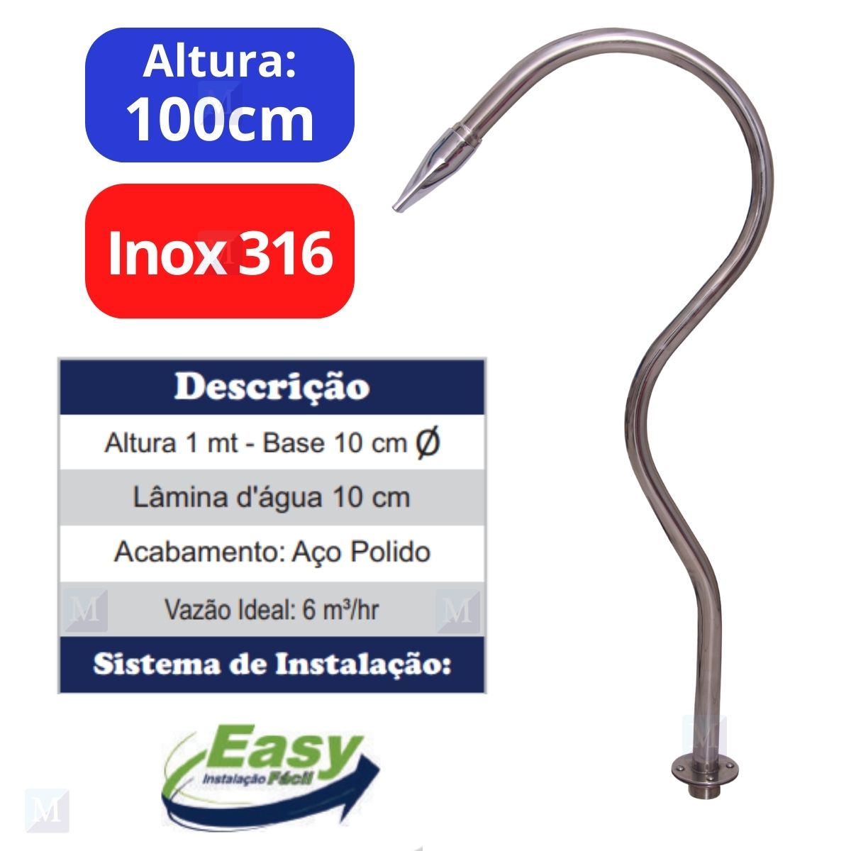 • Medidas (cm): 100cm altura x 10cm saída d'água.