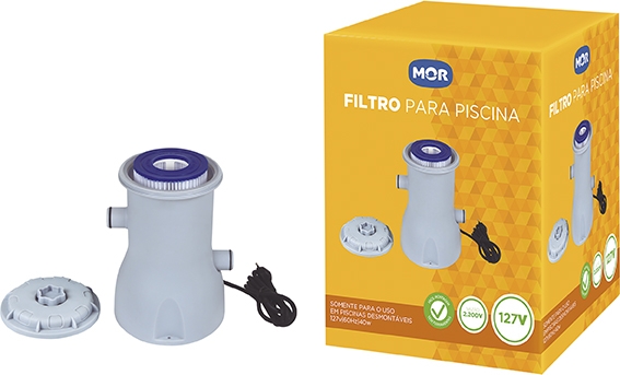 Filtro para Piscina inflável - Mor - 110 v possui capacidade adequada de filtragem por hora, o que reduz o gasto de energia, tornando mais rápido e dinâmico o tratamento da água da piscina. Para um bom funcionamento do seu filtro, o seu refil deve ser trocado a cada três meses quando usado constantemente.