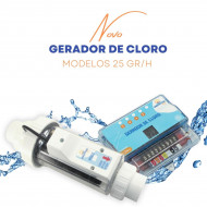 Gerador de cloro Nautilus EasyClor G-4 modelo 25 AL sua piscina com tratamento automático e pronta para uso.