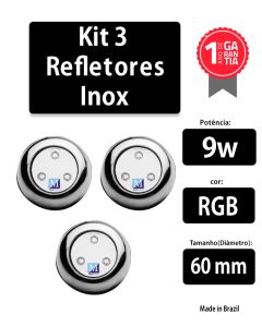 Kit 3 Leds para Piscina 9w Azul Inox 60mm