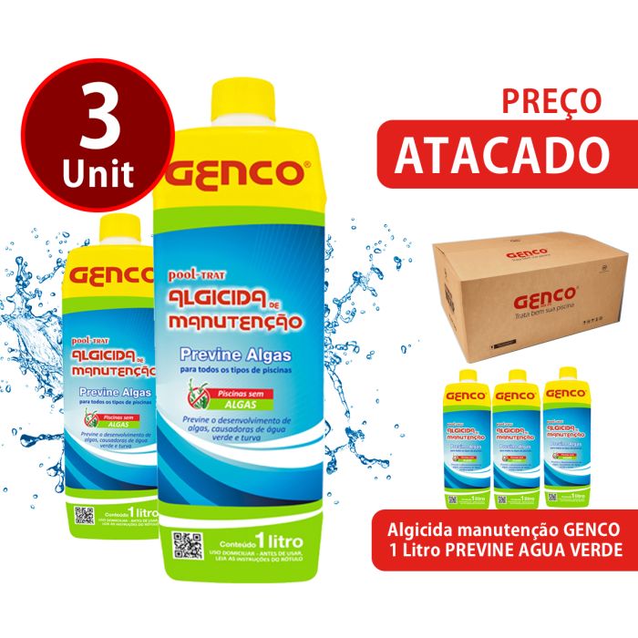 kit 3 und Algicida manutenção GENCO 1 Litro PREVINE AGUA VERDE
