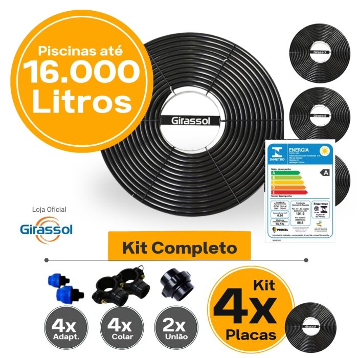Kit Aquecimento Solar piscinas até 16.000 Litros (4 PLACAS)