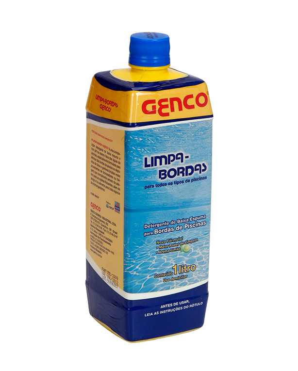 O LIMPA-BORDAS GENCO é uma composição detergente biodegradável, de baixa espuma e com pH na mesma faixa das águas de piscinas, especialmente formulada para eliminar das bordas da piscina os depósitos de óleos e gorduras que normalmente servem de adesivo para as sujeiras flutuantes além de abrigo e/ou alimento para toda espécie de microorganismos.