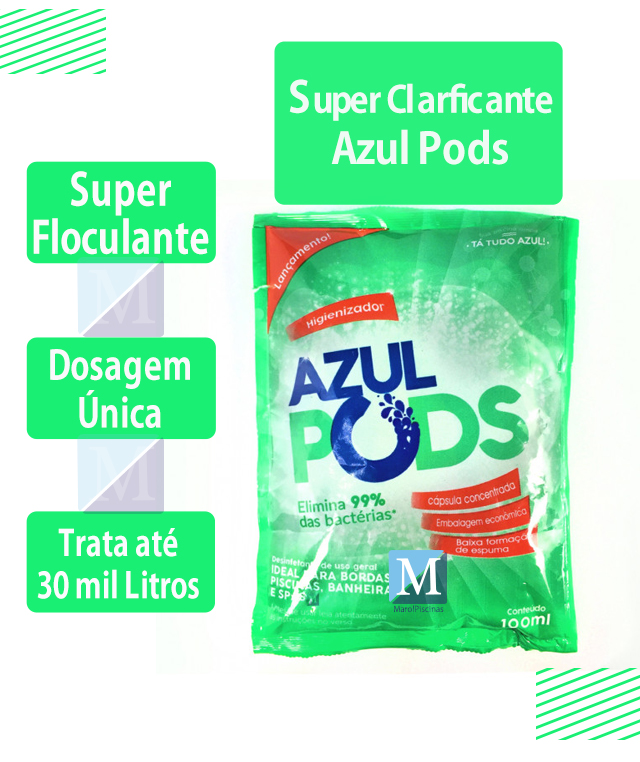 AzulPods é uma linha de produtos altamente concentrados, criada pensando na sustentabilidade e cuidando dos recursos naturais, visando o futuro das próximas gerações. A Linha Azulpods foi desenvolvida com o que há de mais avançado em tecnologias sustentáveis, pensando sempre na comodidade e facilidade de uso dos produtos e menor geração de resíduos e contaminantes no meio ambiente. Com embalagens práticas e recicláveis, dosagens únicas e produto mais concentrado, você garante o tratamento da sua piscina com a qualidade e facilidade que somente a linha Azulpods tem.