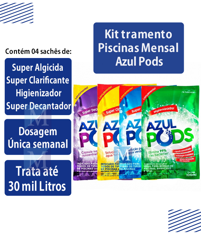Kit mensal Tratamento Limpeza Piscinas Completo Azulpods