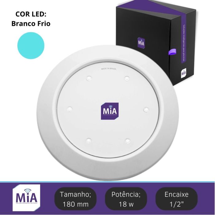 Led para piscina 18w Branco Frio ABS 180mm Super MIA