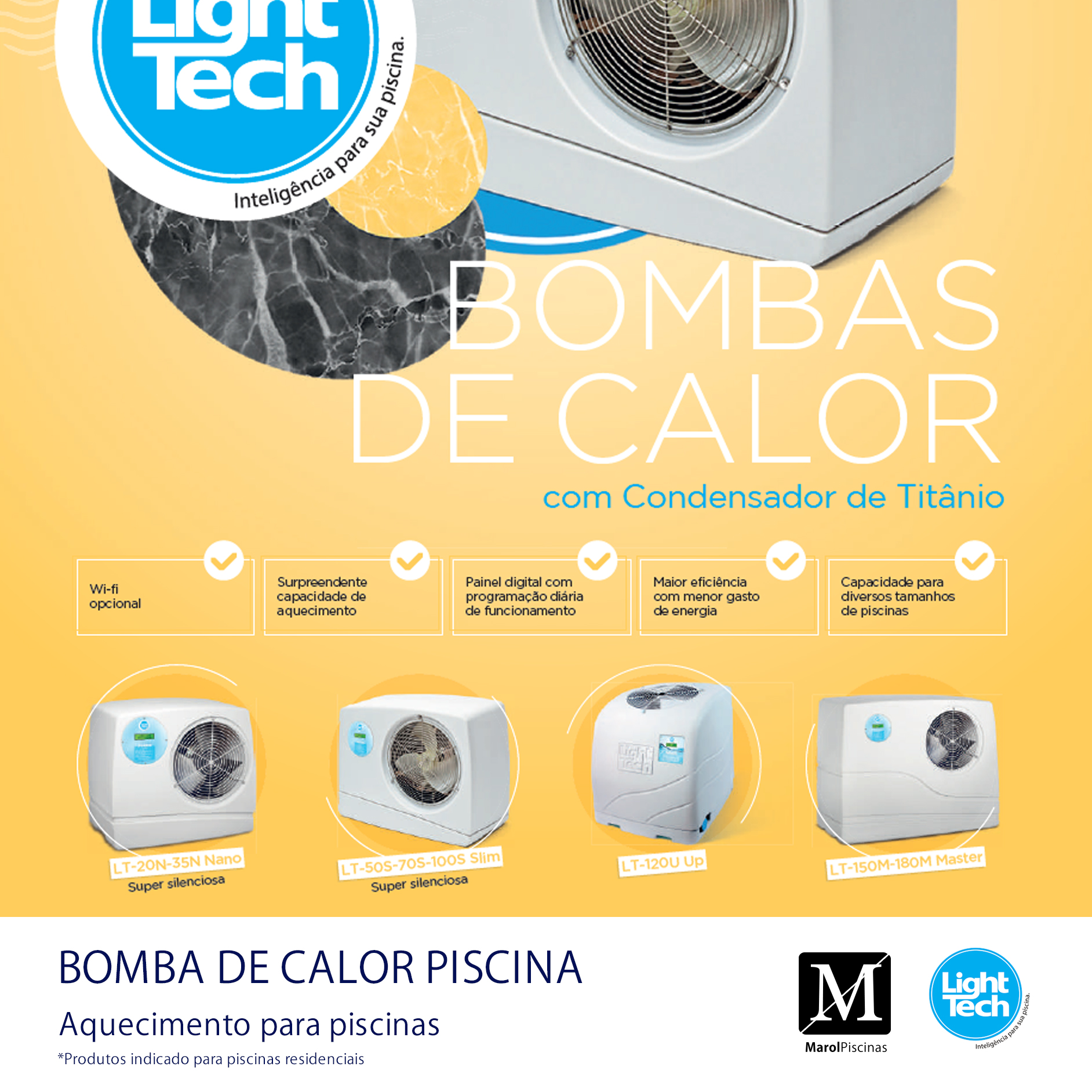 Chegou a mais avançada tecnologia em aquecimento de piscinas: BombaS de Calor Light Tech. RevolucionáriaS por dentro e por fora, a BombaS de Calor Para Piscinas Light Tech introduzem um novo conceito de design, segurança, resistência e economia.